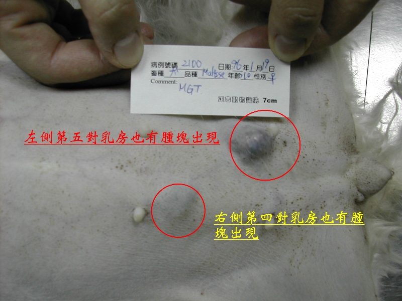 曾於其他動物醫院接受乳腺腫瘤切除手術,兩個月內又發現有數個腫塊,且有疼痛現象...